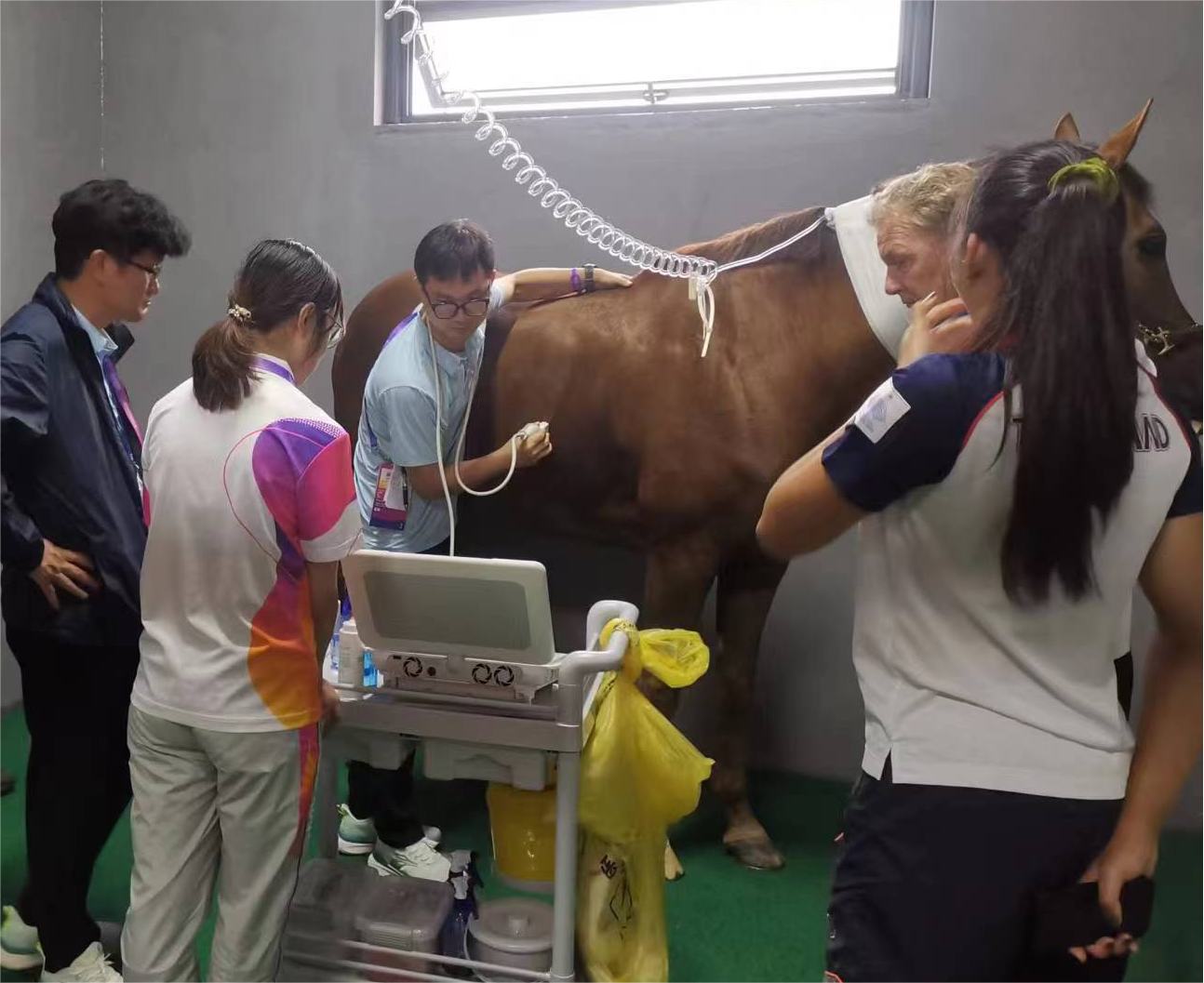 兽医在马术运动项目中是非常重要的一环,不仅仅在于治疗马匹疾病,更是在保障参赛马匹福利和赛事公平中起着关键作用。每场马术比赛之前都设置有兽医验马环节,就是为了最大限度地保障马匹福利,防止有伤病的马匹继续比赛。