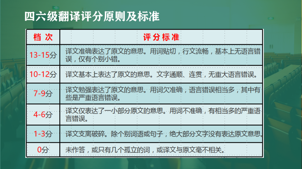 甄亚乐通过视频分享与真题分析教导大家四六级翻译评分原则及标准与翻译真题方向,并强调了翻译要注重取舍、学会替换 、笔译流畅。