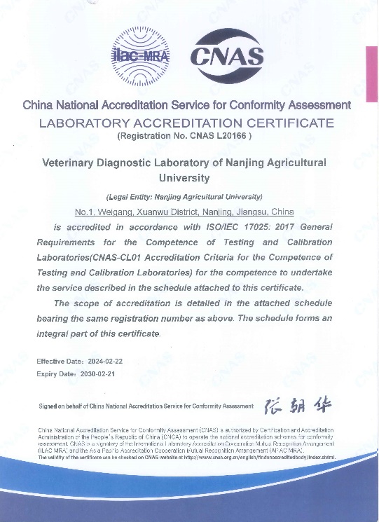 德赢Vwin官方区域合作伙伴兽医诊断与检测中心是集禽、猪、牛等动物疫病监测、诊断、研究于一体的校级研究中心。获得CNAS认可资格是对中心检测能力的高度认可,对促进中心的人才培养质量和社会服务水平具有积极作用。