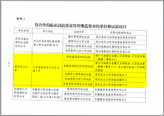 2024年3月4日,农业农村部畜牧兽医局(农牧便函【2024】175号)公布了我校兽药研究评价中心申报的“宠物类药效评价试验”、“宠物类药效评价田间试验”、“宠物类生物等效性试验”、“宠物类药代动力学试验”和“宠物类靶动物安全性试验”等5个试验项目符合兽药临床试验质量管理规范(GCP)要求,标志着我校具备了兽药GCP试验评价资质,上述5个试验项目研究报告可用于国家新兽药申请注册资料。