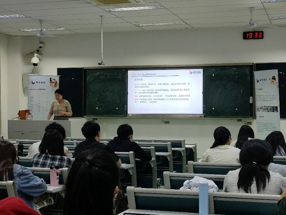 李紫琳向学生详细介绍了宠物临床外科的基本知识,先后陈述了各类医疗器械的特点及使用事项、病患、外科医生及手术室准备、手术原则、外科止血、缝合材料、缝合样式和术后护理的相关知识,重点强调了外科手术前、中、后的各类注意事项,尤其是卫生方面的要求,并在课程最后向同学们展示了公猫去势手术的视频。