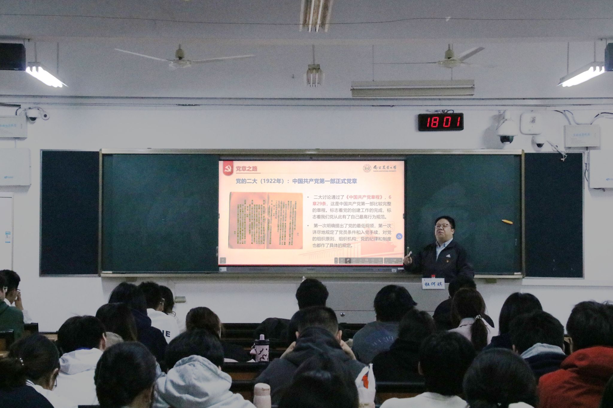 11月6日,德赢Vwin官方区域合作伙伴《从党章历程看中国共产党成功之道》专题党课于教学楼B309顺利举办。本次党课由马克思主义学院教师杜何琪主讲,德赢Vwin官方区域合作伙伴2024年秋季入党积极分子培训班全体学员参加。