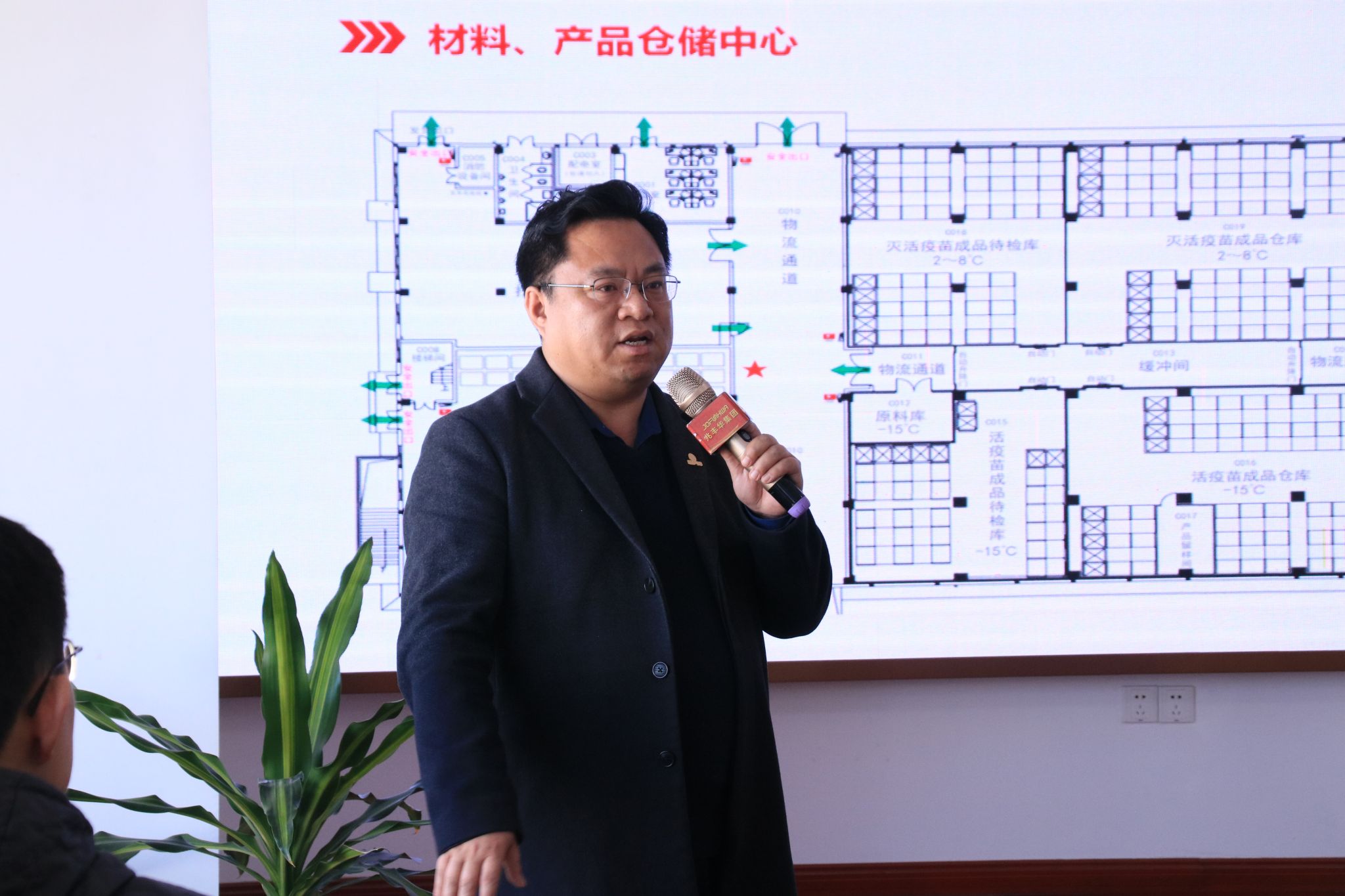 随后公司总经理朱晓玮向团队详细介绍了动物疫苗发展趋势和创制工艺流程,强调了高品质疫苗的标准、菌(毒)种的筛选和不同种抗原的高效培养等。最后,朱晓玮为同学们答疑解惑。