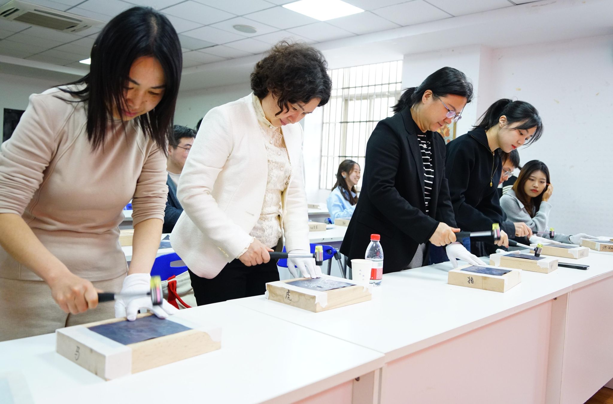在非遗实践环节,参与者们0.2毫米厚度的铜片上拓印出融合传统纹样与现代审美的图案,“12生肖”、“美好祝语”样式的图案永久定格在铜板上。提神醒脑、安神助眠、驱蚊防疫,大家根据自身需求制作不同配方的中药香囊。栩栩如生的绿游锦鲤、色彩丰富的敦煌壁画、温馨明媚的落日夕阳,每一把漆扇都是一件独一无二的艺术品。
