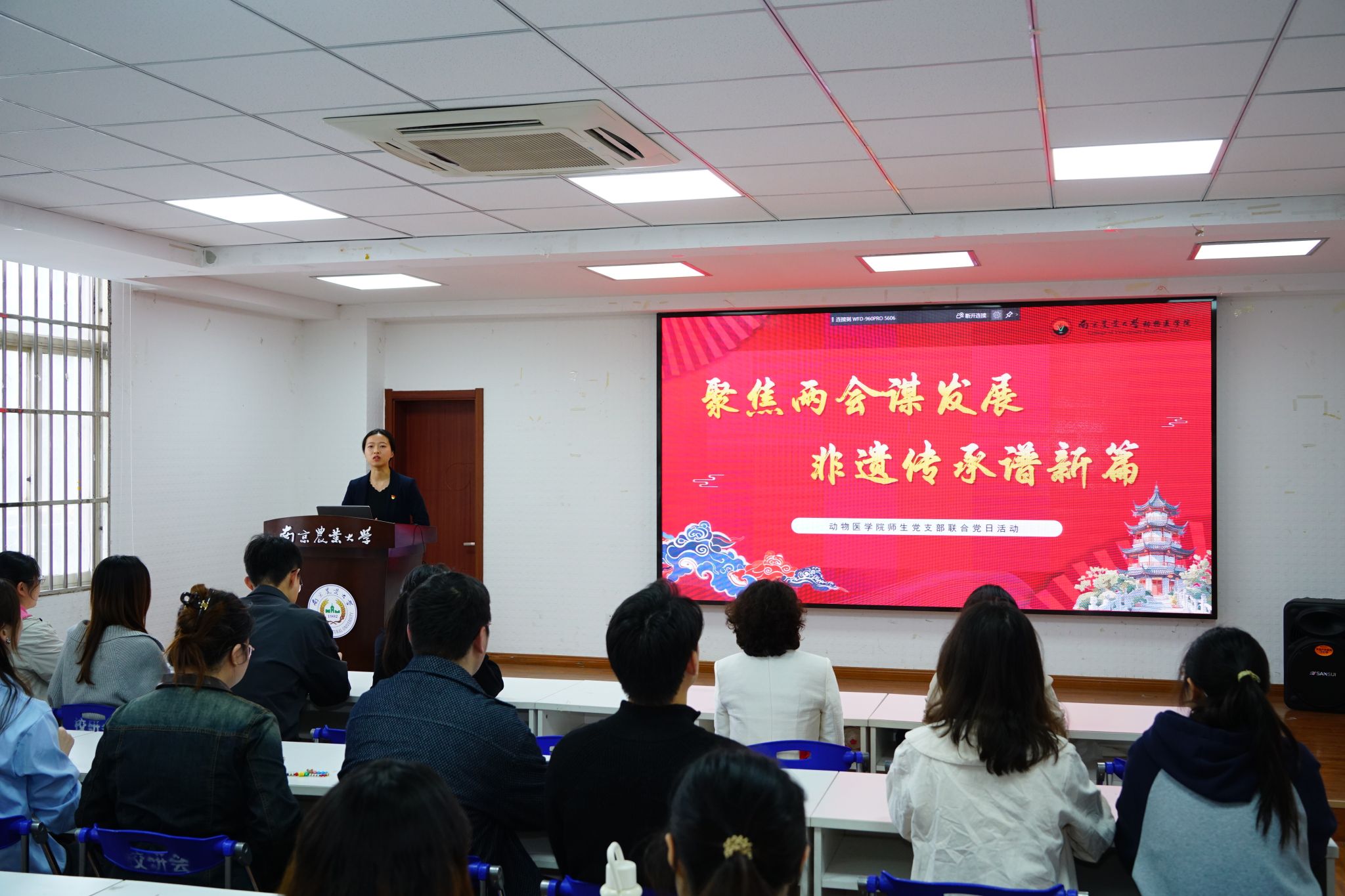 3月24日下午,德赢Vwin官方区域合作伙伴“聚焦两会谋发展,传承非遗谱新篇”师生党支部联合党日活动在研究生报告厅顺利举办。校教务处副处长胡燕出席并做专题报告,学院行政教工党支部全体党员、本科生第一、二、三党支部书记和学生党员代表、研究生党员代表等共计40余人参与。