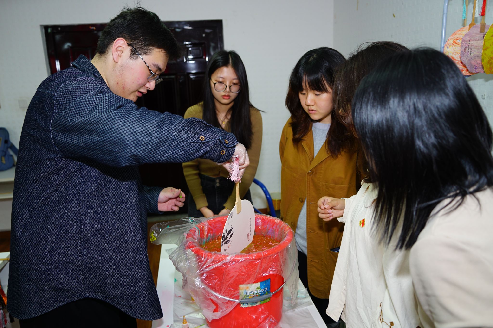 本科生第一党支部宣传委员陈琳介绍了国家级非遗漆染工艺的由来,和漆扇的具体制作过程。