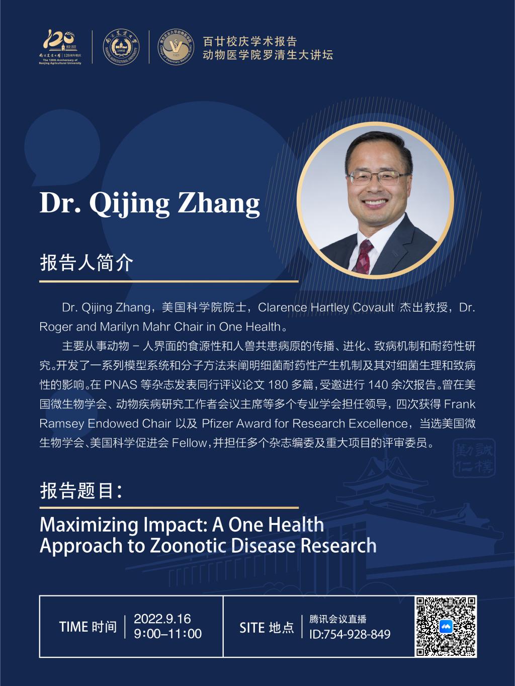 【百廿校庆学术报告】德赢Vwin官方区域合作伙伴罗清生大讲坛-Maximizing Impact: A One Health Approach to Zoonotic Disease Research