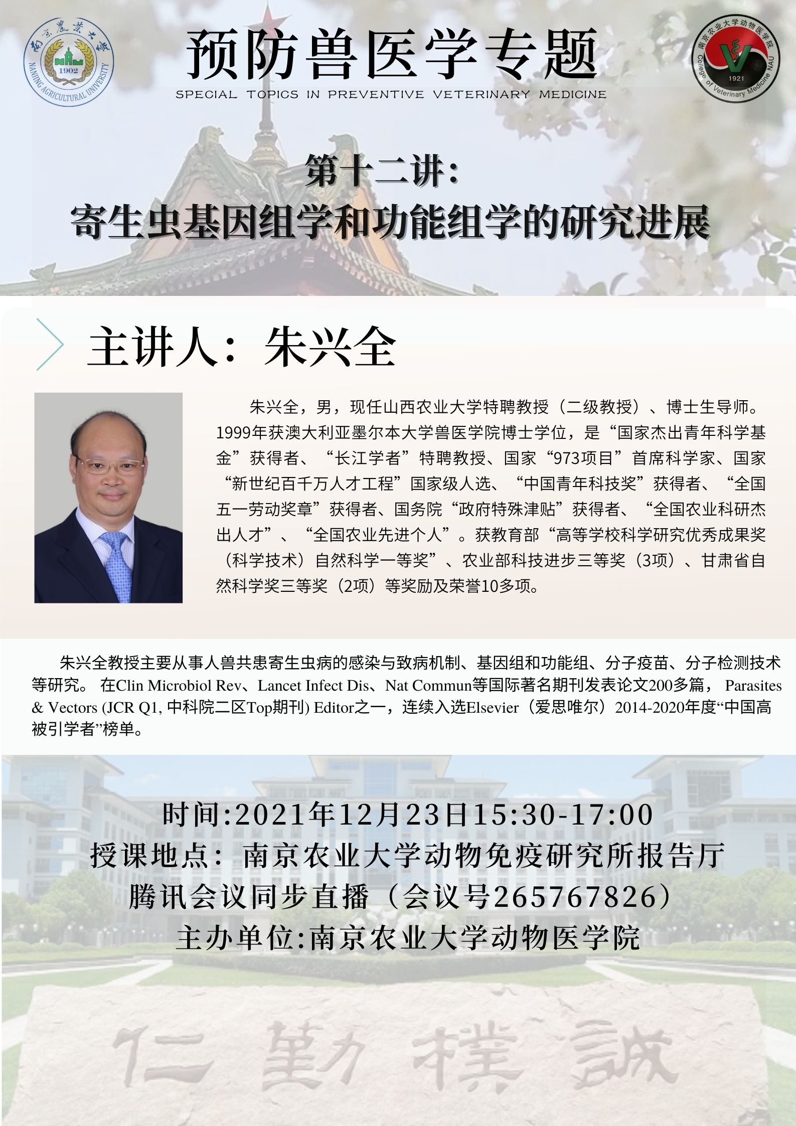 【研究生教育】《预防兽医学专题》-第十二讲:寄生虫基因组学和功能组学的研究进展(朱兴全)