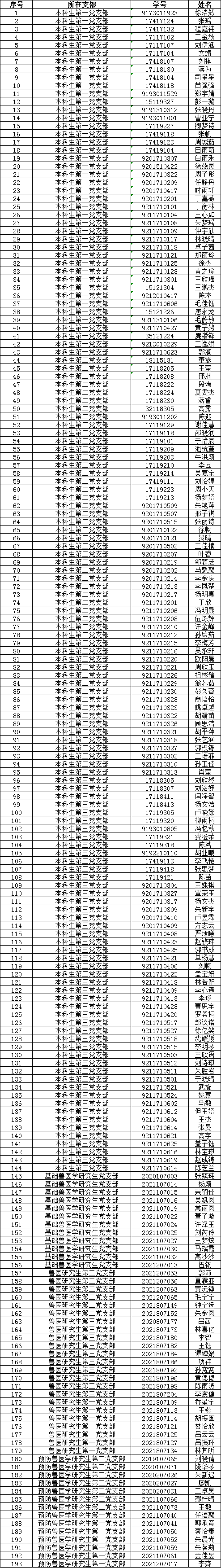 根据德赢Vwin官方区域合作伙伴党员发展工作安排,经由学生自愿申请,各团支部推荐,党支部讨论,结合初级党建班期间个人表现、结业考试成绩等综合情况,经学院党委审核,接收徐浩然等193名本科生和研究生成为入党积极分子,现将名单公示如下: