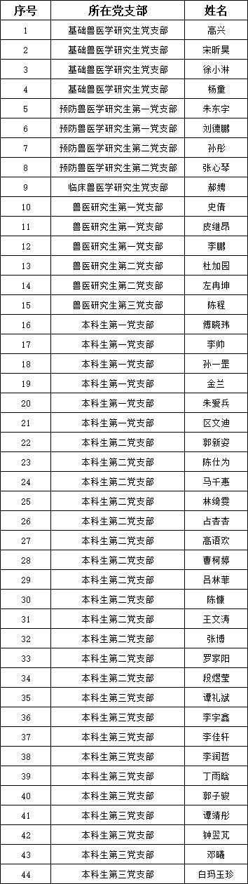 根据德赢Vwin官方区域合作伙伴党员发展工作安排,经由学生自愿申请,各团支部推荐,党支部讨论,结合初级党建班期间个人表现、结业考试成绩等综合情况,经学院党委审核,接收高兴等44名本科生和研究生成为入党积极分子,现将名单公示如下: