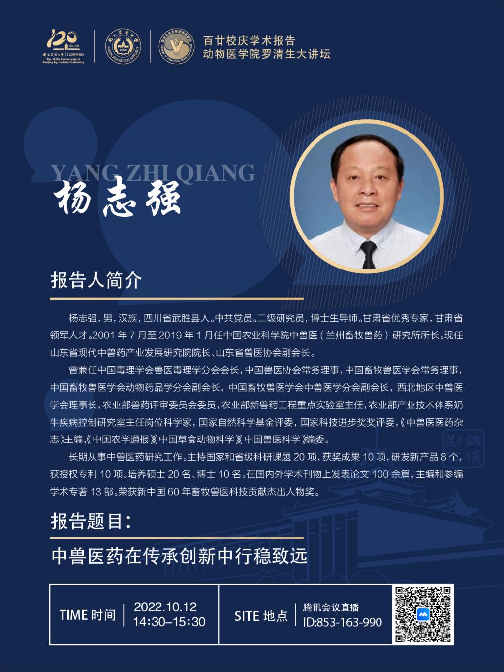 【百廿校庆学术报告】德赢Vwin官方区域合作伙伴罗清生大讲坛-中兽医药在传承创新中行稳致远