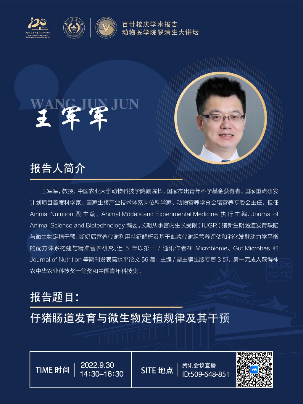 【百廿校庆学术报告】德赢Vwin官方区域合作伙伴罗清生大讲坛-仔猪肠道发育与微生物定植规律及其干预