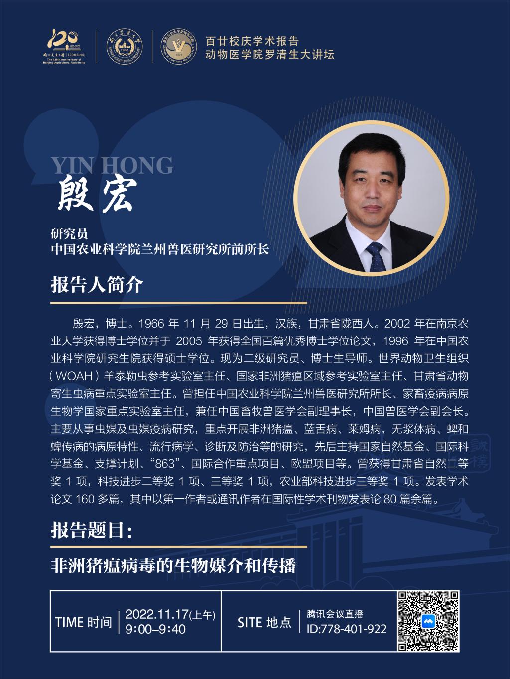 【百廿校庆学术报告】德赢Vwin官方区域合作伙伴罗清生大讲坛-非洲猪瘟病毒的生物媒介和传播