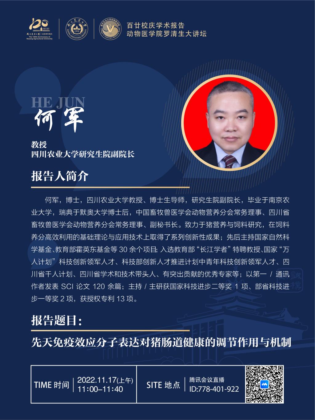 【百廿校庆学术报告】德赢Vwin官方区域合作伙伴罗清生大讲坛-先天免疫效应分子表达对猪肠道健康的调节作用与机制
