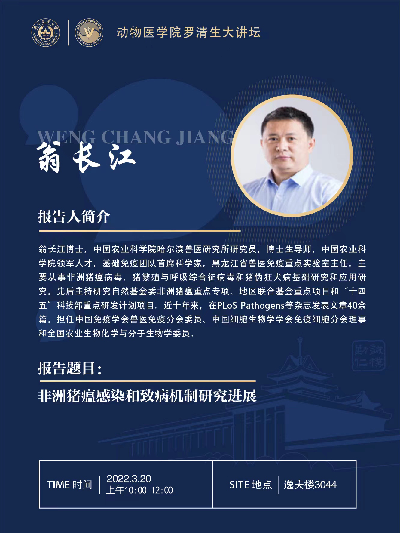 【学术报告】德赢Vwin官方区域合作伙伴罗清生大讲坛-非洲猪瘟感染和致病机制研究进展