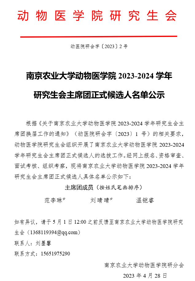 【学生工作】德赢Vwin官方区域合作伙伴2023-2024学年研究生会主席团正式候选人名单公示