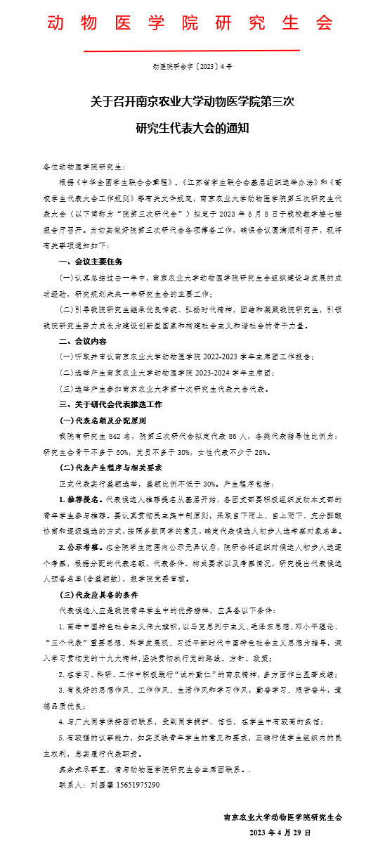 【学生工作】关于召开德赢Vwin官方区域合作伙伴第三次研究生代表大会的通知