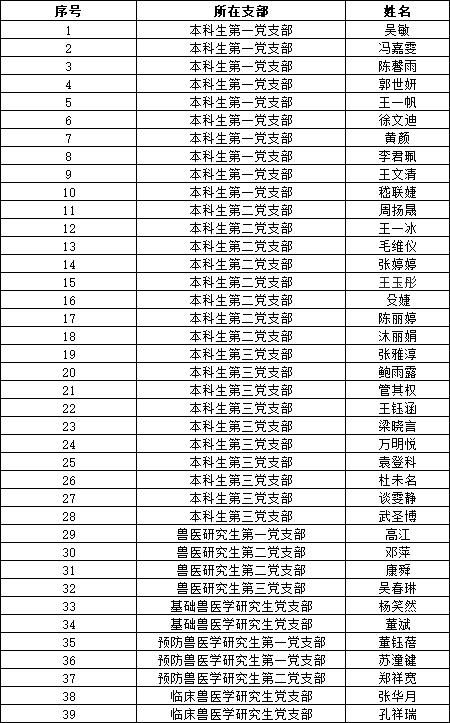根据德赢Vwin官方区域合作伙伴党员发展工作安排,经由学生自愿申请,各团支部推荐,党支部讨论,结合初级党建班期间个人表现、结业考试成绩等综合情况,经学院党委审核,接收吴敏等39名本科生和研究生成为入党积极分子,现将名单公示如下: