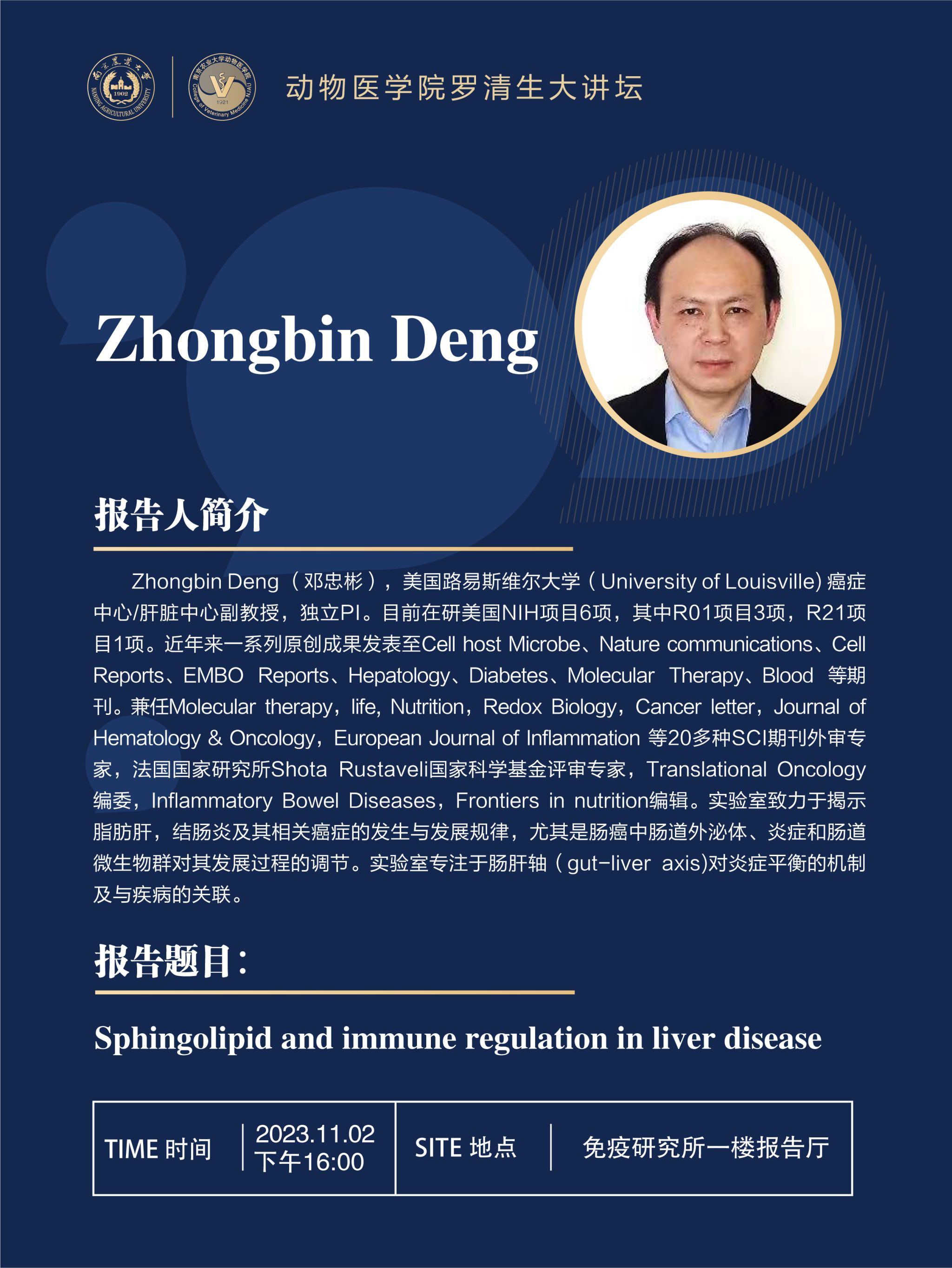 【学术报告】德赢Vwin官方区域合作伙伴罗清生大讲坛-Sphingolipid and immune regulation in liver disease