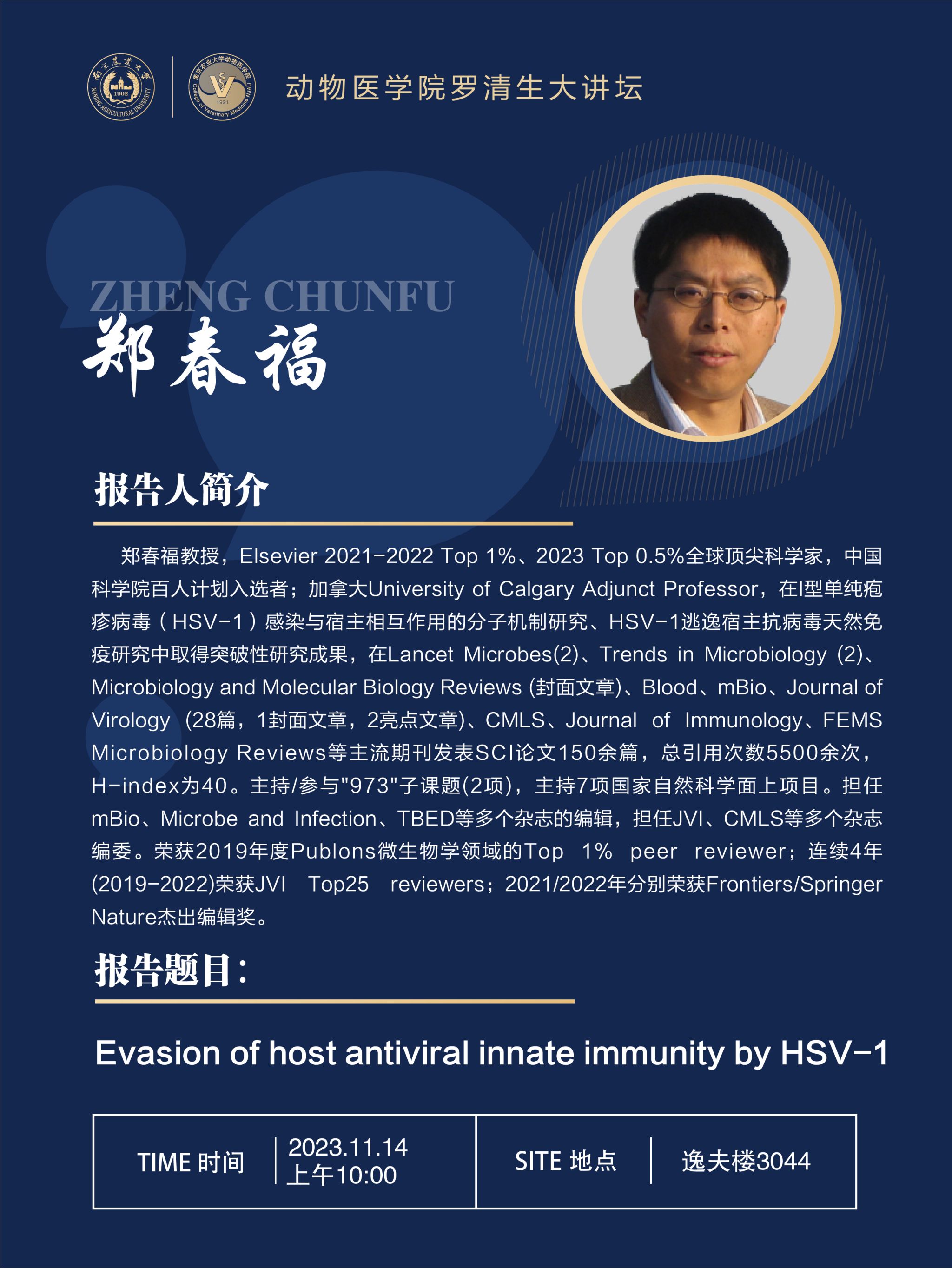【学术报告】德赢Vwin官方区域合作伙伴罗清生大讲坛-Evasion of host antiviral innate immunity by HSV-1