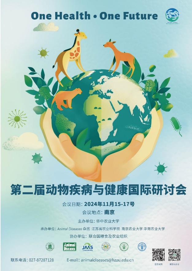 由Animal Diseases期刊和华中农业大学动科动医学院联合举办,江苏省农科院、南京农大和华南农大携手联合国粮食与农业组织共同承办的第二届动物疾病与健康国际研讨会将于11月15日-17日在南京召开。