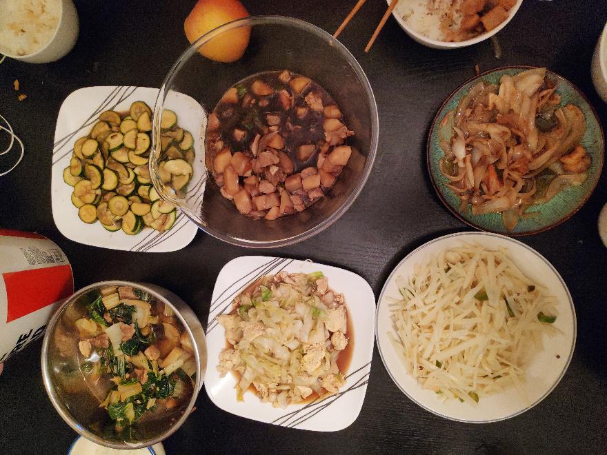 当我们陷入菜贵的情况下买什么都要按汇率算一算的困境中时,胡老师给我们提供了新思路,特别是留学生在美生活tips以及如何在美国超市里节省开支。我们买3刀5磅的土豆、4刀5磅的洋葱,买来牛肉鸡腿,每天晚上会蒸出两顿的米饭,方便准备第二天中午的午饭---炒饭,我们还会添加各种新鲜食材。每天中午大家都会凑上前来看我们住公寓四人为自己准备了什么午餐。