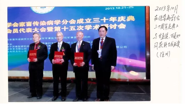 随后,蔡老谈到了鸡新城疫N79型疫苗和禽霍乱807系弱毒苗的研制和测试工作。蔡老在密歇根州立大学求学,师从美籍华人教授张先光,学习疫苗的研制方法。当时张教授主要研究的就是禽霍乱疫苗。学成之后,蔡老将禽霍乱疫苗带回,并在国内进行实验;实验成功之后,交给南京药械厂生产。此外,蔡老还在艾奥瓦州大学兽医研究所所长霍弗斯特(霍弗斯特是国际上有名的禽病学专家,美国禽病学主编)的指导下研制出了鸡新城疫N79型疫苗。