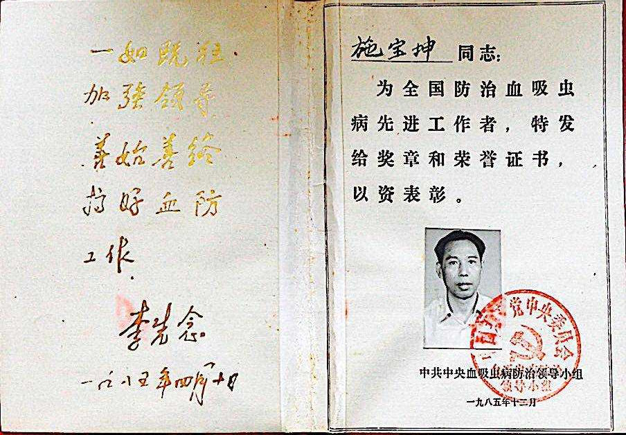 1957年,综合兴趣和长远的发展以及响应国家号召,施老先生选择了研究血吸虫病的主要方向。正所谓择一事,终一生。这一选,老师就用将他毕生的精力与智慧投入到了其中,成为了这个方面的领军人物。并且培育了很多这方面的杰出人才。
