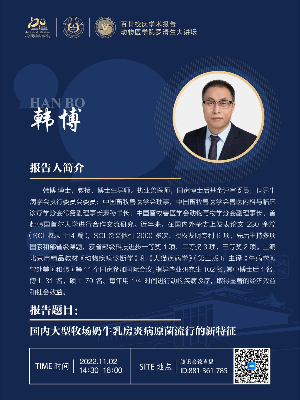 【百廿校庆学术报告】德赢Vwin官方区域合作伙伴罗清生大讲坛-国内大型牧场奶牛乳房炎病原菌流行的新特征