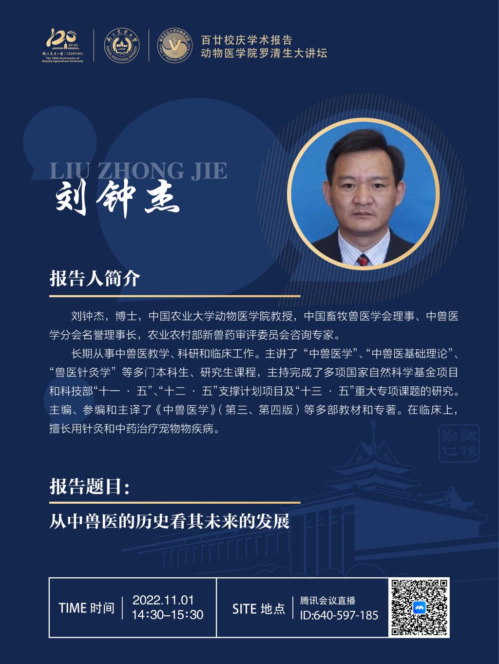 【百廿校庆学术报告】德赢Vwin官方区域合作伙伴罗清生大讲坛-从中兽医的历史看其未来的发展