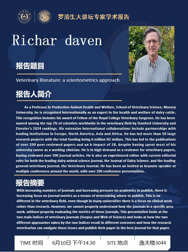 【罗清生大讲坛外国专家学术报告】Veterinary literature: a scientometrics approach