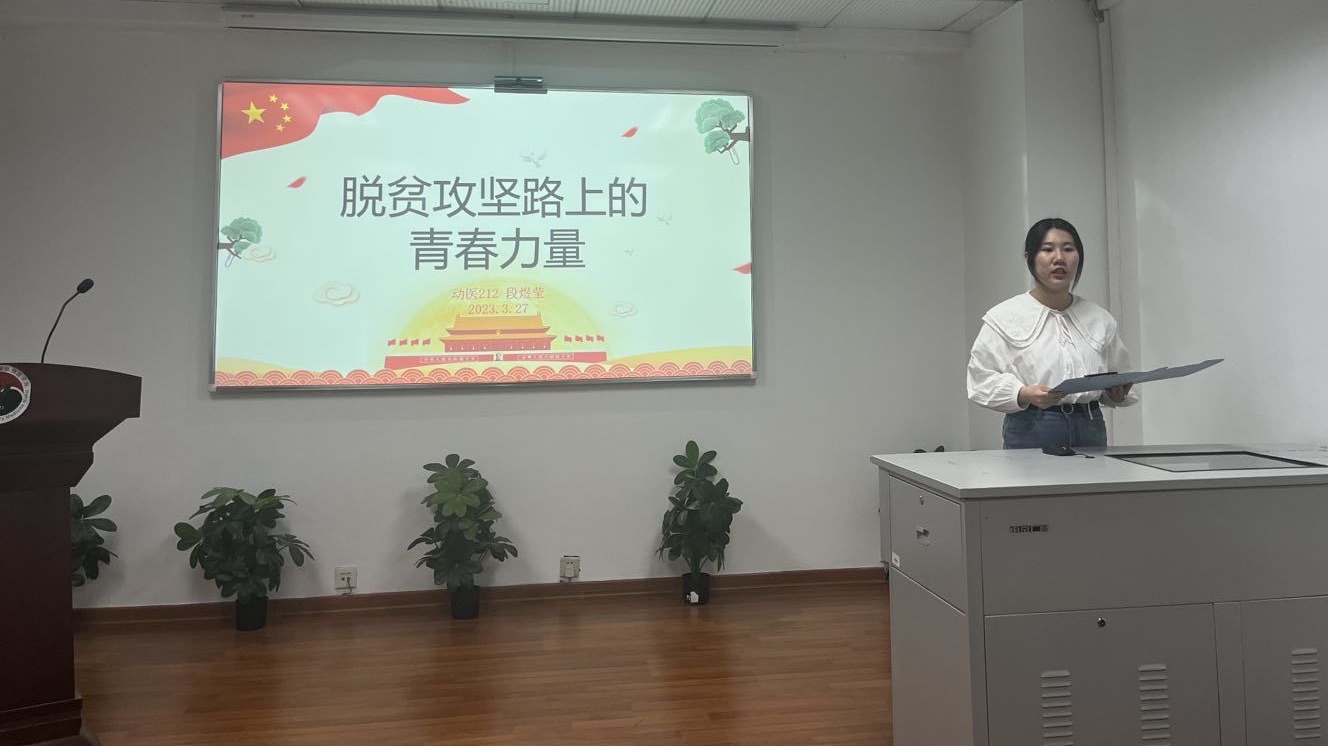 随后,各班级团支部书记按照抽签顺序以PPT汇报分享的方式,分别从党的二十大精神、雨花英烈精神、乡村振兴、井冈山精神等方面进行汇报。充分表达了各自主讲内容的核心内涵和新时代青年的思考。