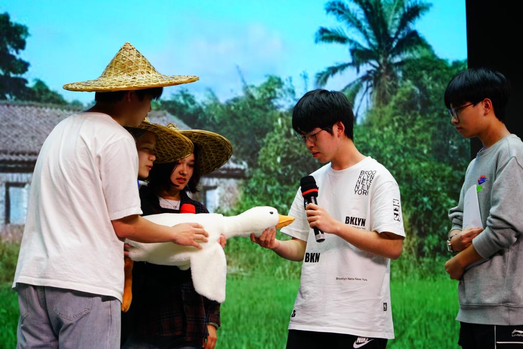 随着经典歌曲《茉莉花》的旋律响起,动医类2206团支部用高昂的歌声向我们展示浓浓的爱国热情。《灯火里的中国》响起,让我们仿佛看到了祖国的万里山河。动医类2202团支部带来的精彩舞台剧,令我们感受到新中国成立初期科研前辈对我国发展核事业的贡献之大,热爱之深。动医类2207团支部将目光凝聚于罗清生先生孜孜不倦研究鸭瘟疫苗的功绩,鼓舞着动医学子用奋斗践行兽医使命。