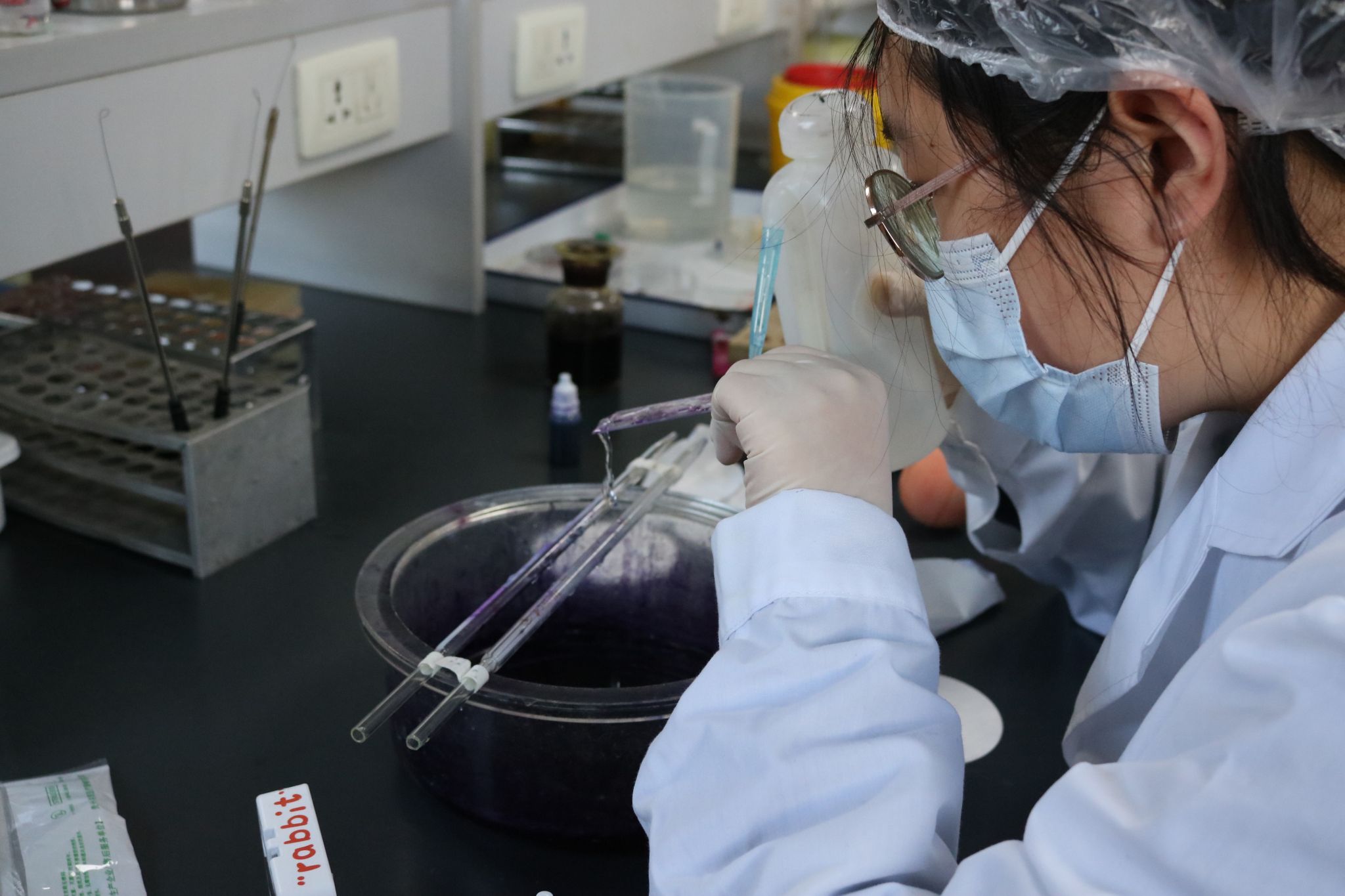 外科手术比赛采用兔胃缝合手术形式,考察同学们对手术流程的理解和实际操作水平。禽类病理剖析需要参赛选手仔细观察并做出诊断,现场撰写病理剖析报告。病原菌检查主要考察学生在病料采集、制作触片、染色方法和使用显微镜等方面的技能。