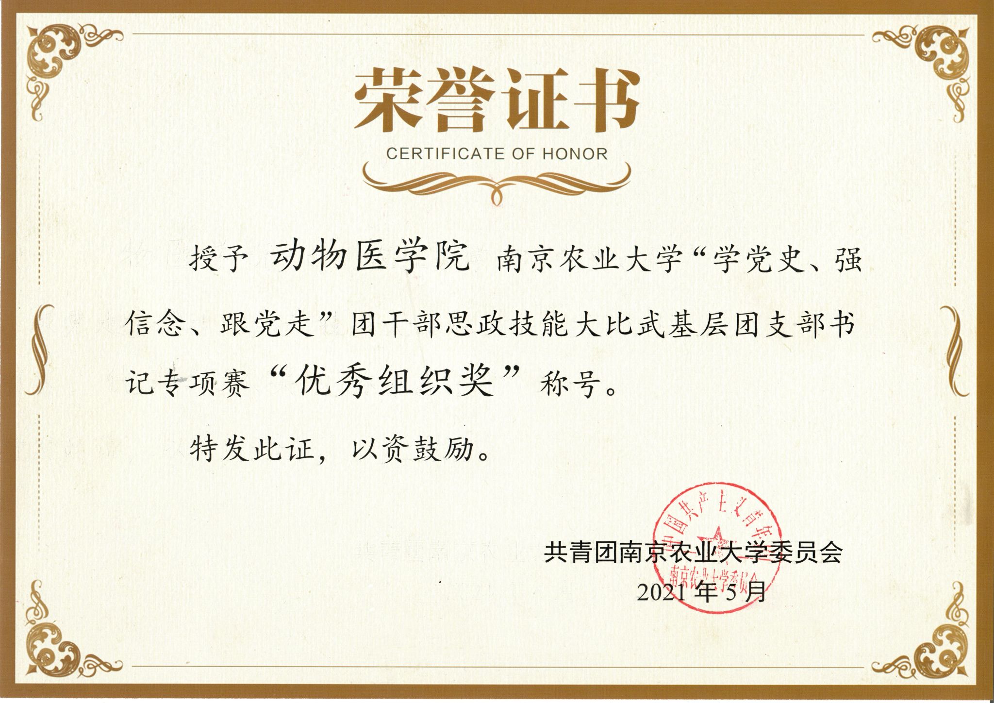 2021年德赢Vwin官方区域合作伙伴“学党史、强信念、跟党走”团干部思政技能大比武基层团支书书记专项赛“优秀组织奖”称号