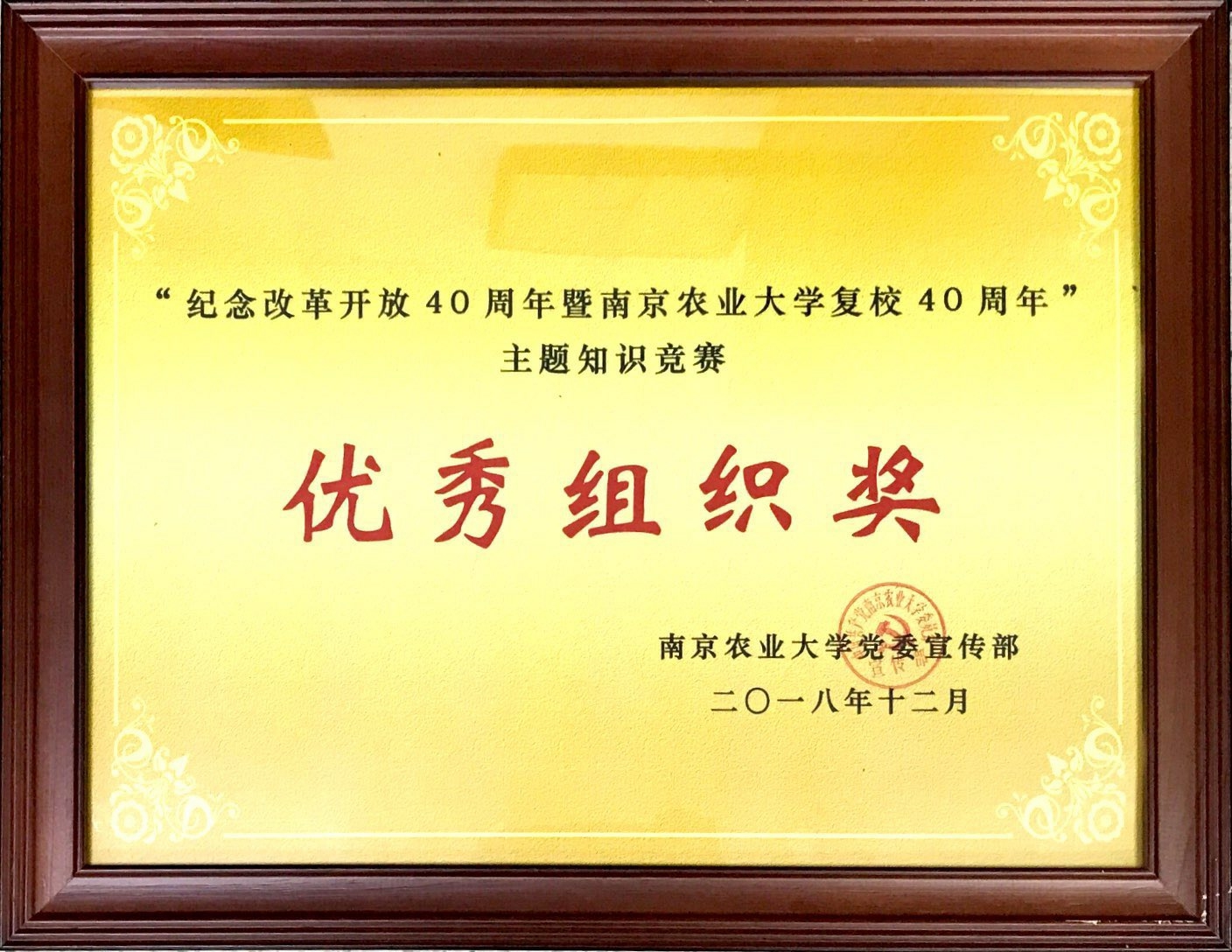 “庆祝改革开放40周年暨德赢Vwin官方区域合作伙伴复校40周年”主题知识竞赛优秀组织奖