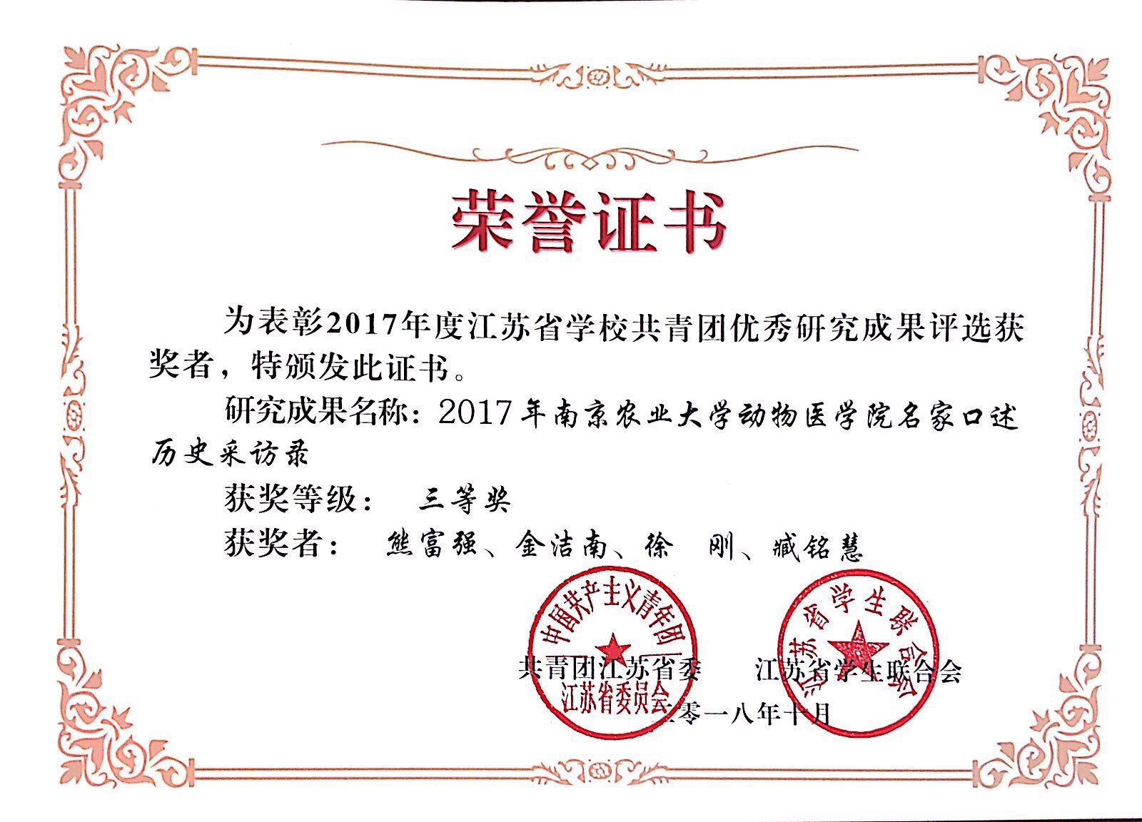 《2017年德赢Vwin官方区域合作伙伴名家口述历史采访录》获江苏省学校共青团优秀研究成果三等奖
