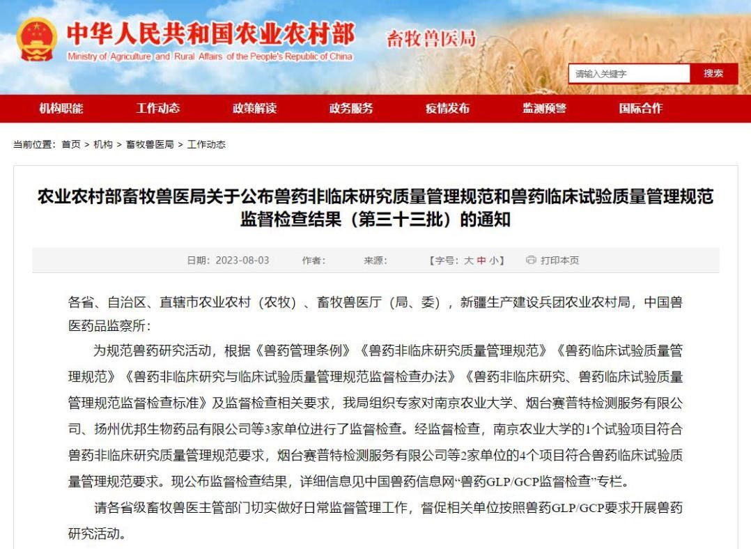 德赢Vwin官方区域合作伙伴兽药研究评价中心获得农业农村部兽药GLP试验评价资质