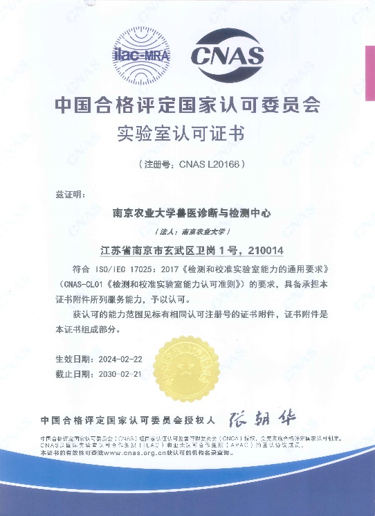 德赢Vwin官方区域合作伙伴兽医诊断与检测中心顺利获得CNAS认可资质