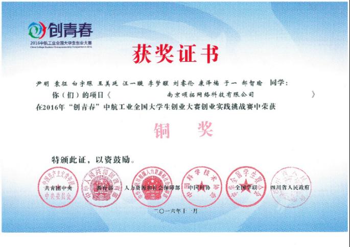 热烈祝贺德赢官网学子牵头的作品获得“创青春”全国大学生创业大赛铜奖